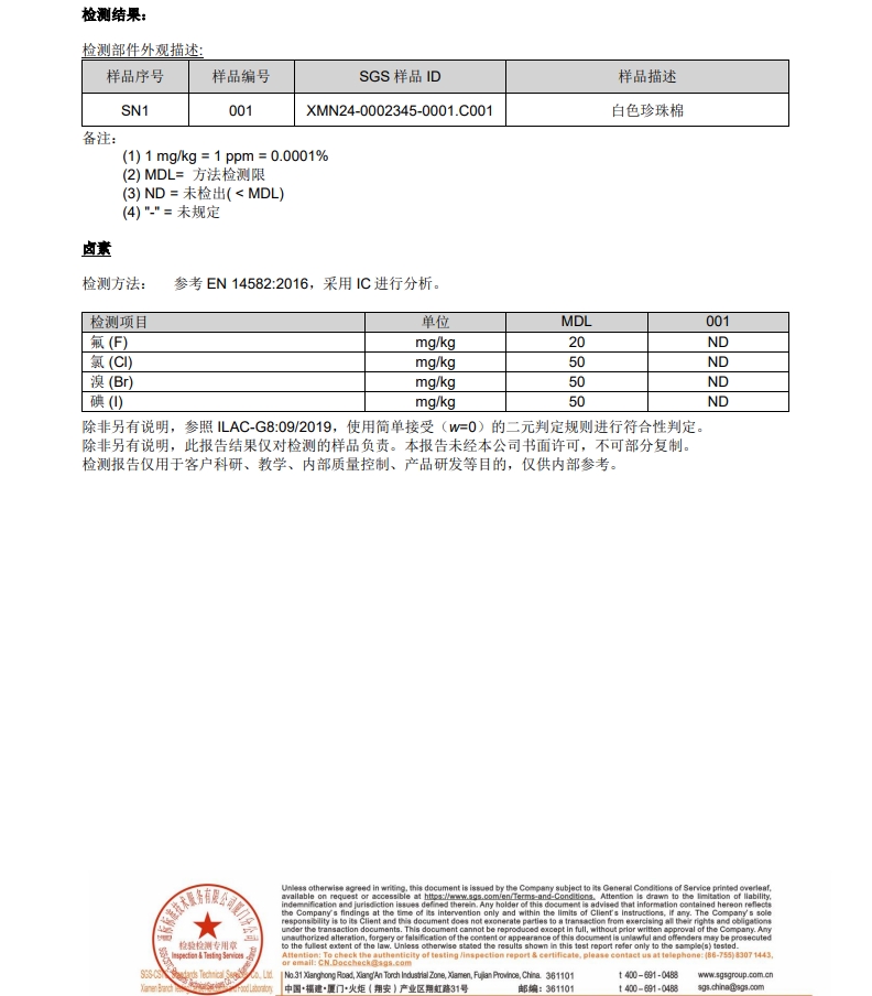泡棉 卤素 报告 epe foam Halogen Report