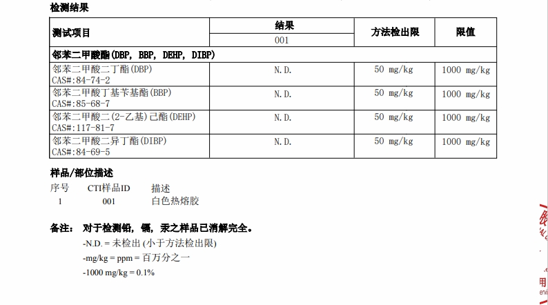 热熔胶Rohs报告 Hot Glue Rohs Report